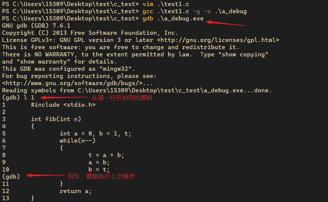 下面将使用windows PowerShell演示,输入gdb命令,进入gdb程序。